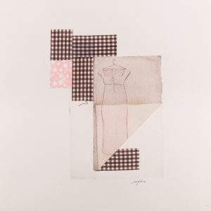 • Aguafuerte y punta seca sobre plancha de zinc sobre collage de tela y papel sobre papel.